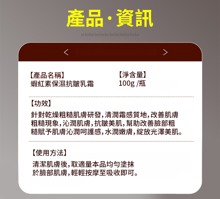 【全臉亮白無皺紋】蝦紅素維C雙抗乳霜